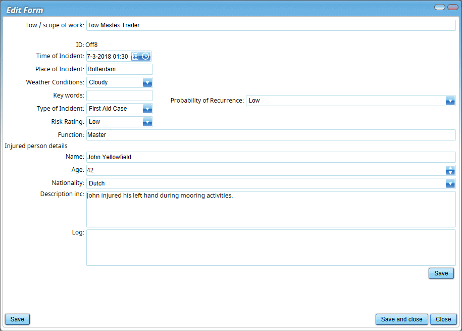 - Filling in and saving forms based on a template, such as a noon report, non-conformity report, incident report or collision report. Using this, surely the most recent and actual version of the template is used.