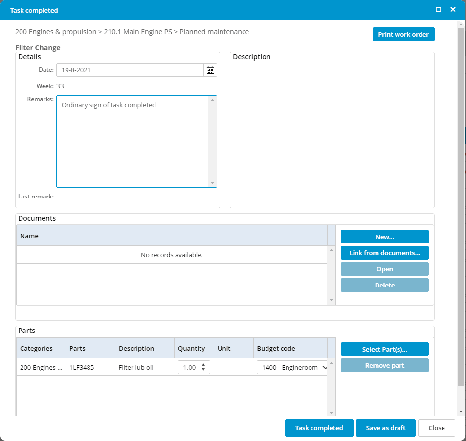 Ahora guarde y cierre la ventana emergente, luego guarde y cierre también los detalles de la tarea.