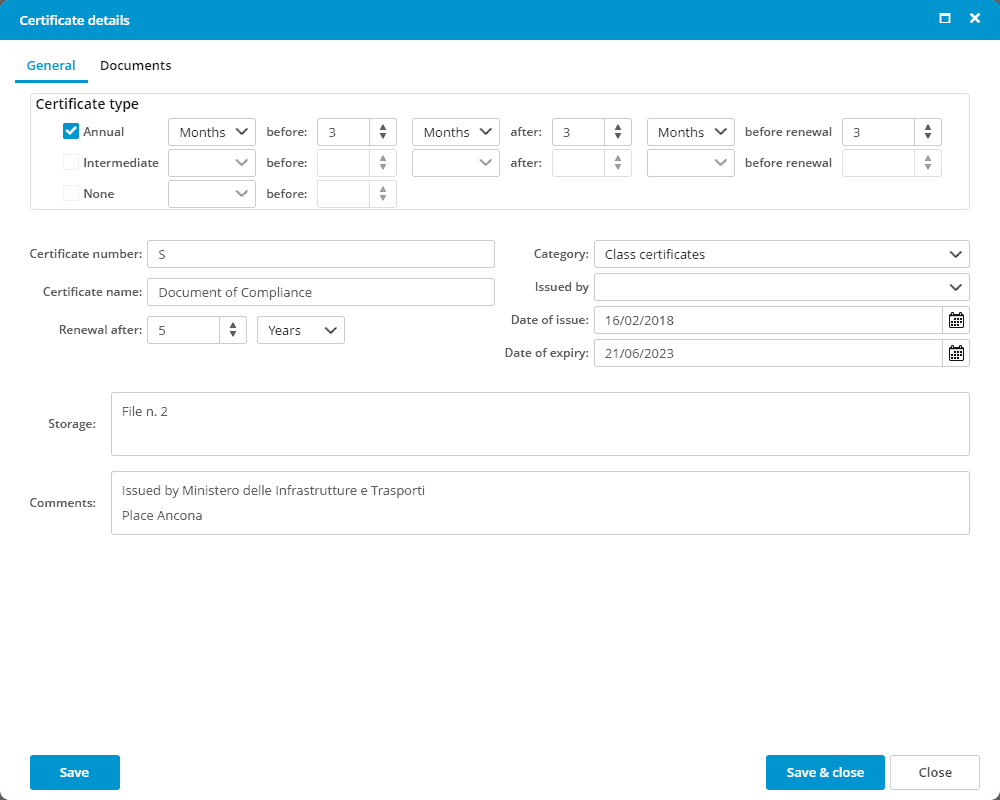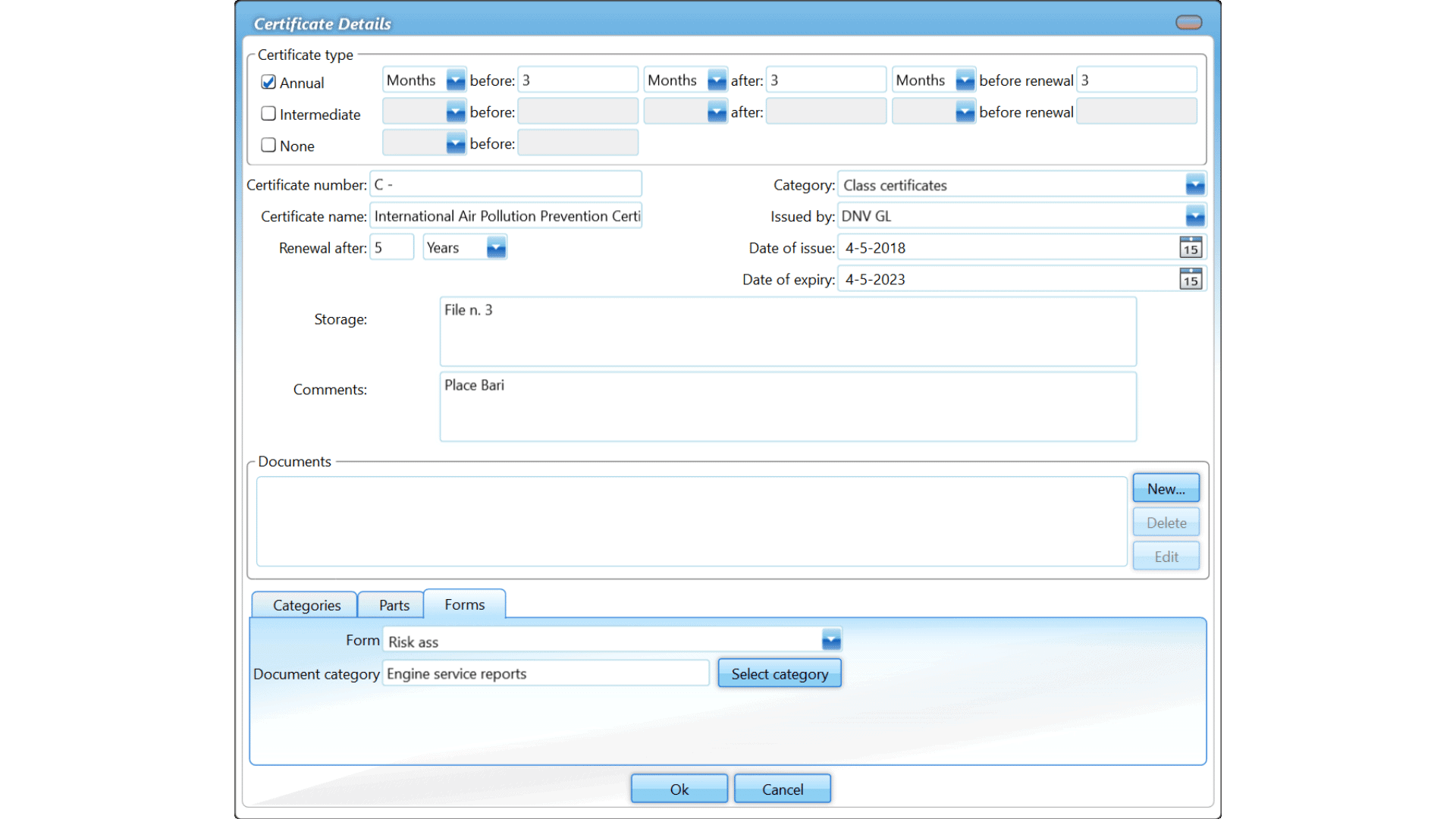 El módulo de certificados de MXSuite le ayuda a organizar todos los certificados y documentación de los buques. Esto le da la seguridad de que su documentación está en orden.