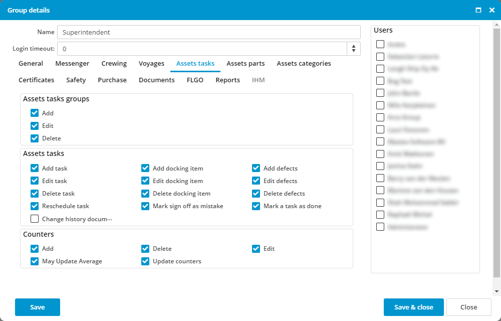 Alle gebruikers hebben hun eigen gebruikersrechten voor elk onderdeel van MXSuite. Vooral voor de onderhoudsmodule zijn er veel gebruikersrechten.