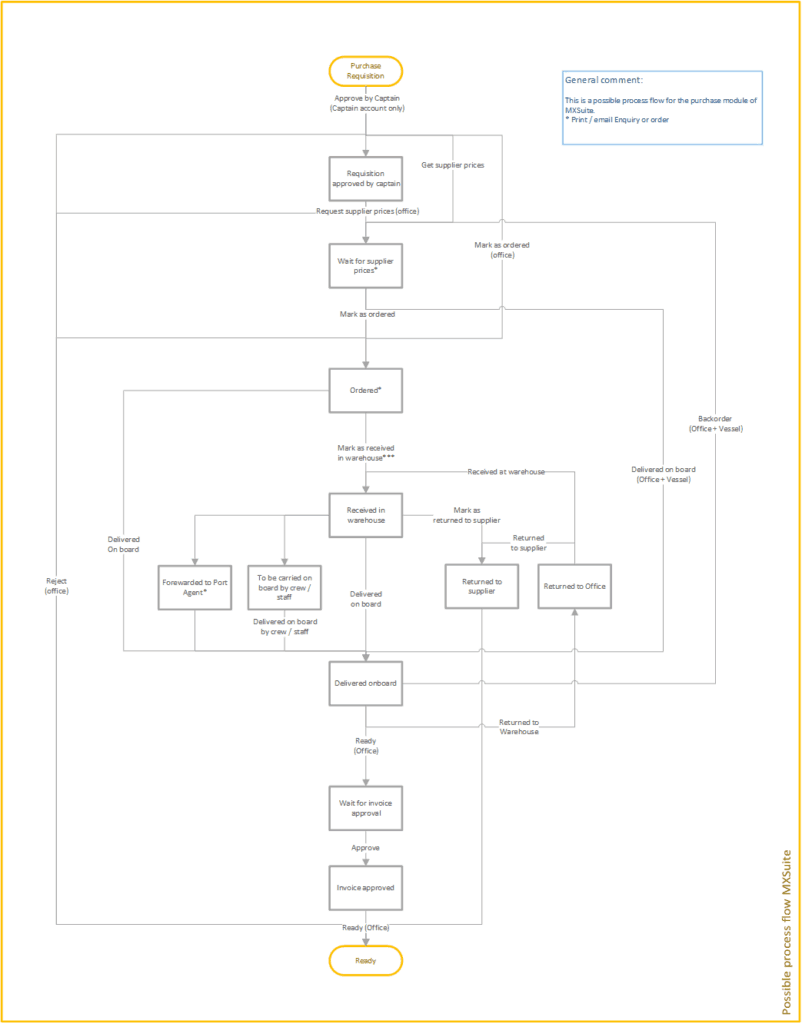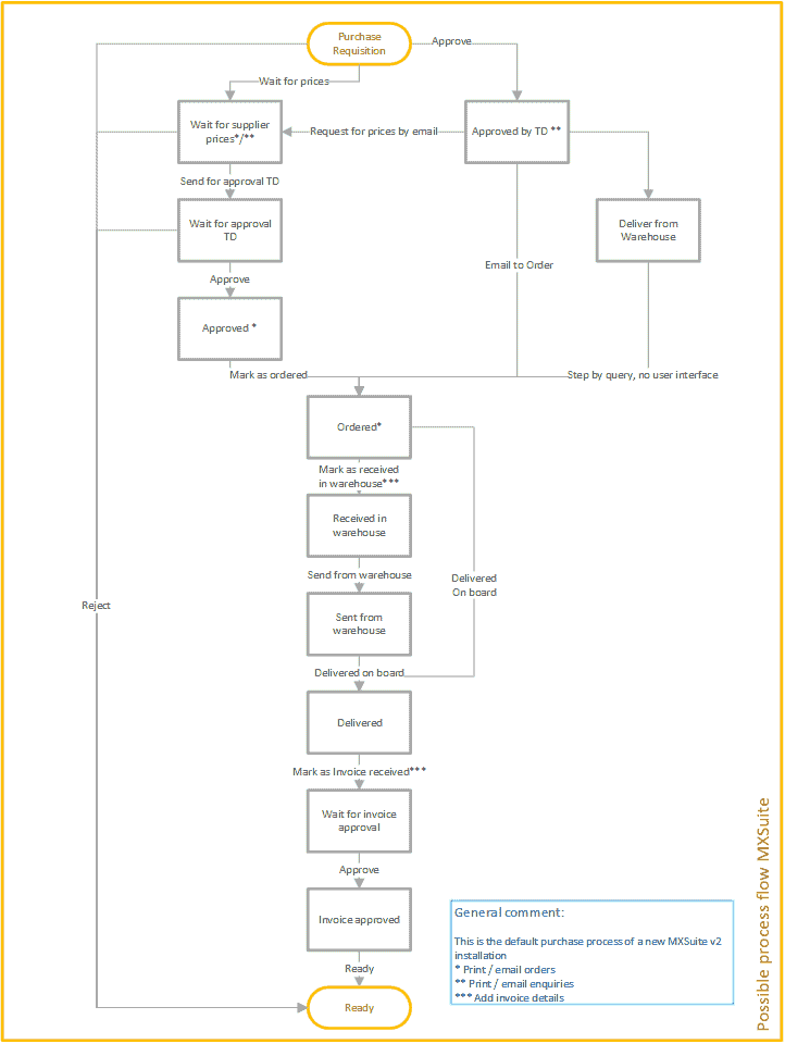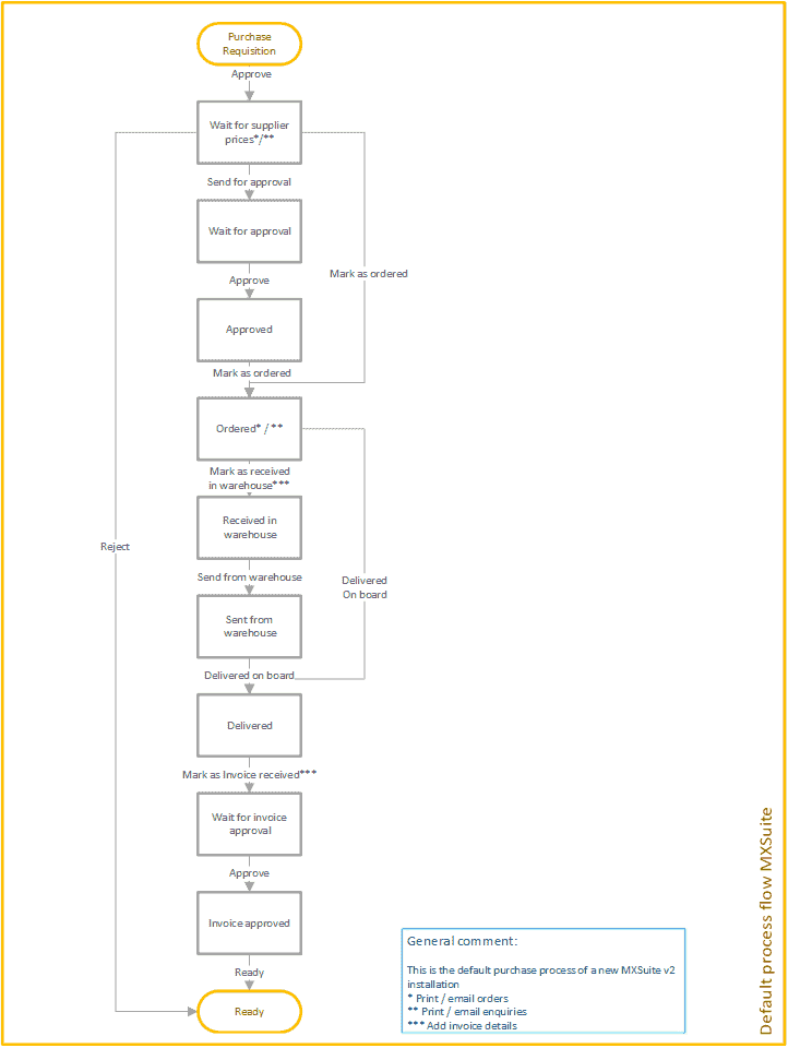 - Evalueer het standaard MXSuite-aankoopproces zoals in het stroomschema.