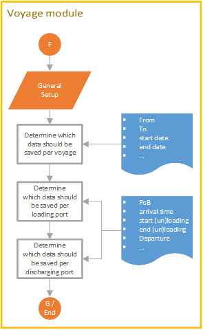 - Bepaal welke gegevens per laadhaven moeten worden opgeslagen (PoB, aankomsttijd, start laden, einde laden, vertrek)